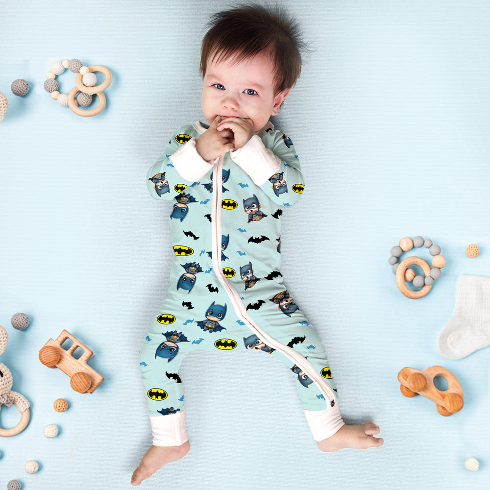 Introducing our dynamic collection of Batman Rompers! Designed with a touch of attitude and style, these rompers feature prints inspired by the iconic Batman character, bringing a cool and edgy vibe to your little one's wardrobe. Crafted with soft and comfortable fabrics, our Baby Batman Rompers ensure that your baby stays cozy while making a bold fashion statement. Whether they're crawling, playing, or just chilling, these rompers will have your baby looking effortlessly cool. Let your little rebel express their unique personality with our Baby Batman Rompers collection!