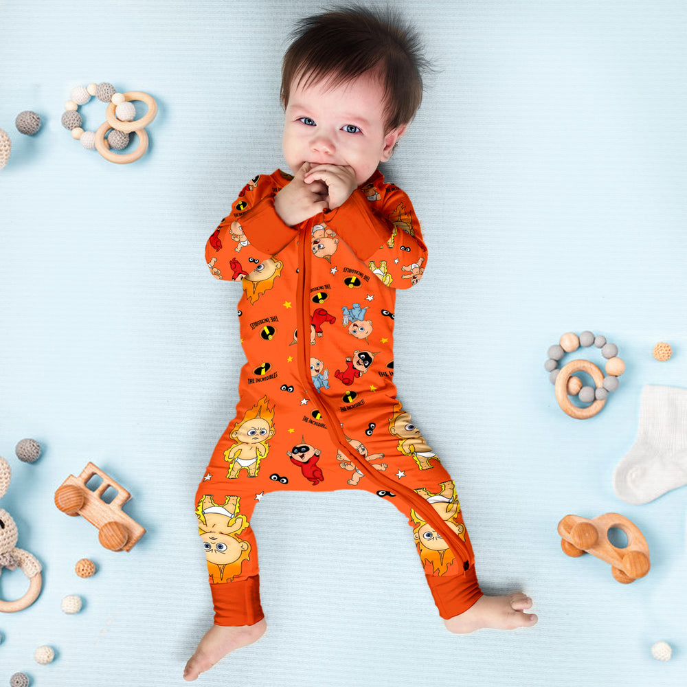 Inspired by the iconic characters from "The Incredibles" each romper in this collection features bold prints and vibrant colors, bringing the excitement of crime-fighting adventures to your little one's wardrobe. Crafted with soft, high-quality bamboo fabrics, these rompers provide both comfort and style for your tiny hero. Whether they are mastering their first crawl or unleashing their super giggles, our "The Incredible Collection" ensures that every moment is filled with unstoppable fun and charm. Get ready to dress your baby in superhero style and watch them conquer the day with incredible cuteness!
